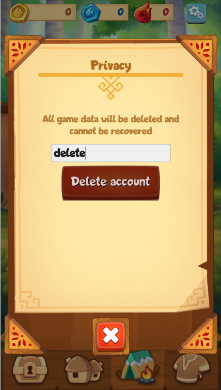 In the «Privacy» section, find the input field “Enter ‘delete’”.